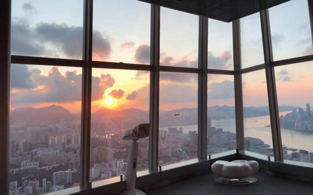 Sky 100 tọa lạc ở tầng thứ 100 của toàn nhà Thương Mại Quốc Tế (ICC) cao 118 tầng, phía Tây bán đảo Cửu Long. Nằm ở độ cao 393 mét so với mực nước biển, đây là đài quan sát cao thứ mười trên thế giới, nơi bạn sẽ thỏa sức ngắm nhìn toàn cảnh đảo Hồng Kông, bán đảo Cửu Long và Đại Mạo Sơn, đỉnh núi cao nhất Hồng Kông.