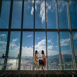 Với sức chứa tối đa 1,000 du khách, Sky 100 mang đến bầu không khí yên tĩnh, không gian rộng rãi, nơi du khách có thể ngắm nhìn quang cảnh 360 độ tuyệt đẹp từ trên cao. Ngoài đài quan sát, bạn có thể ghé qua nhà hàng Café 100 thuộc quản lý của khách sạn 5 sao đẳng cấp Ritz-Carlton để nhâm nhi ly cà phê, thưởng thức món ăn truyền thống hay theo phong cách Tây Âu, chiêm ngưỡng cảnh hoàng hôn đang xuống dần trên biển.
