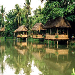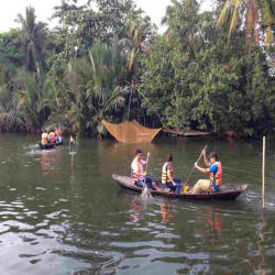 Làng du lịch Bình Quới có 2 khu là Bình Quới 1 và Bình Quới 2, đến đây du khách sẽ như lạc vào một làng quê yên bình với không gian xanh mát của cỏ cây hoa lá, đèn lồng dọc lối đi phản chiếu xuống hồ nước lấp lánh. Những rặng dừa đung đưa bên bờ sông Sài Gòn thơ mộng cùng với những dòng kênh xanh mát chắc chắn sẽ để lại những ấn tượng khó quên trong hành trình khám phá du lịch sinh thái TPHCM. Du khách sẽ dễ dàng bắt gặp những hình ảnh quen thuộc như chiếc xuồng ba lá, cầu khỉ gập ghềnh... được trang trí độc đáo, tạo nên nét hấp dẫn cho Làng du lịch Bình Quới.
