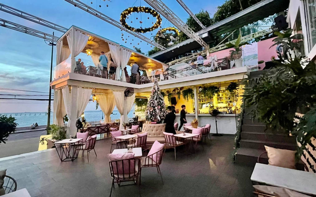 The cafe, with its frontage facing the sea, is known as a luxury cafe, a popular place for young people. The shop is decorated quite beautifully with mainly white tones, the airy space gives you a feeling of being close to nature, you can feel the cool breeze blowing in from the sea. The inside of the bar is divided into two areas, an indoor area with air conditioning and an outdoor area. In the outdoor area, there are many seating positions to watch the sea as well as the sunset in the afternoon.