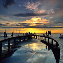Một địa điểm check-in khá thú vị khác tại khu vực đầm Cao Mỹ là cây cầu nổi bằng gỗ kéo dài tận phía xa xa vô cùng nổi bật trên một không gian bao la, đặc biệt là khi thủy triều bắt đầu dâng lên. Cây cầu khá rộng, với sức chứa 5-6 người cùng một lúc nên du khách có thể thỏa sức check-in, chụp ảnh và ngắm hoàng hôn từ phía cầu. Khi thủy triều dâng lên cao, bạn có thể ngồi trên cầu thư giãn bằng cách chạm khẽ bàn chân xuống dòng nước mát lạnh, một cảm giác vô cũng khoan khoái và dễ chịu. Thỉnh thoảng, bạn sẽ dễ dàng bắt gặp những chú chim đang săn mồi hay những chú cá, cua đang bơi nhảy trong nước. Bất kỳ ai khi đến với đầm Cao Mỹ đều vô cùng thích thú bởi nơi đây mang đến một cảm giác vô cùng thư giãn, hòa mình về với cảnh quan thiên nhiên tuyệt đẹp, tạm quên đi những lo toan, bộn bề của cuộc sống tất bật ngoài kia.