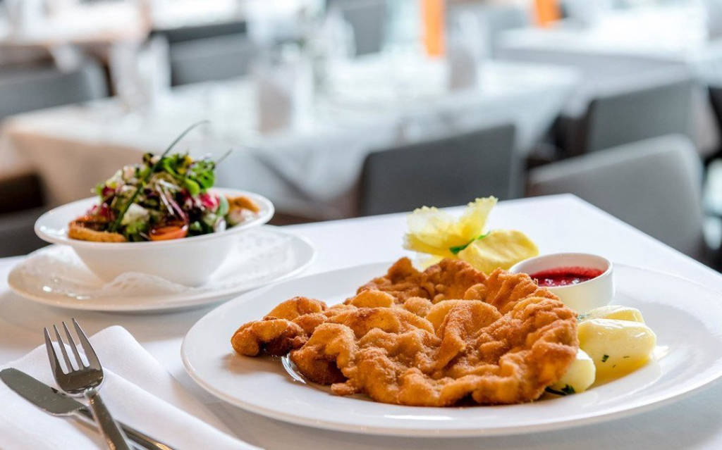 Nhà hàng mang đến một cái nhìn toàn cảnh về khu phố cổ và những ngọn núi xung quanh. Thực đơn bao gồm các món ăn truyền thống của Áo như "Wiener Schnitzel" hoặc "Salzburger Nockerl", cũng như mì ống tự làm, bít tết hoặc cá tươi.