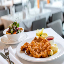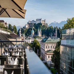 Trải nghiệm ẩm thực IMLAUER Sky - Bar & Restaurant cũng lý tưởng cho các lễ kỷ niệm riêng tư hoặc bữa trưa với đối tác đầy phong cách. Đối với những dịp này, hãy đặt phòng "Mönchsberg" độc quyền với sân thượng riêng (cho tối đa 50 khách). Ở đó, bạn có thể để mắt mình lang thang từ nhà thờ hành hương " Maria Plain" ở Mönchsberg đến nhà thờ Müllner.