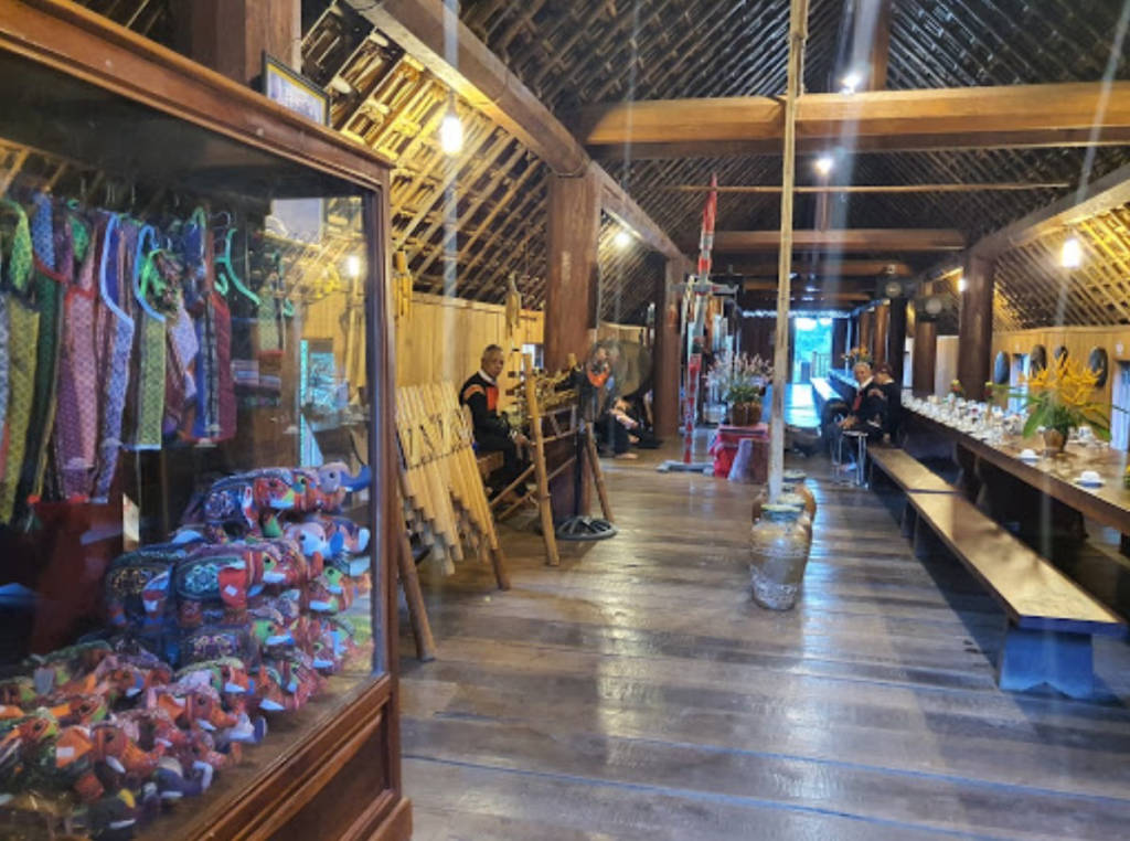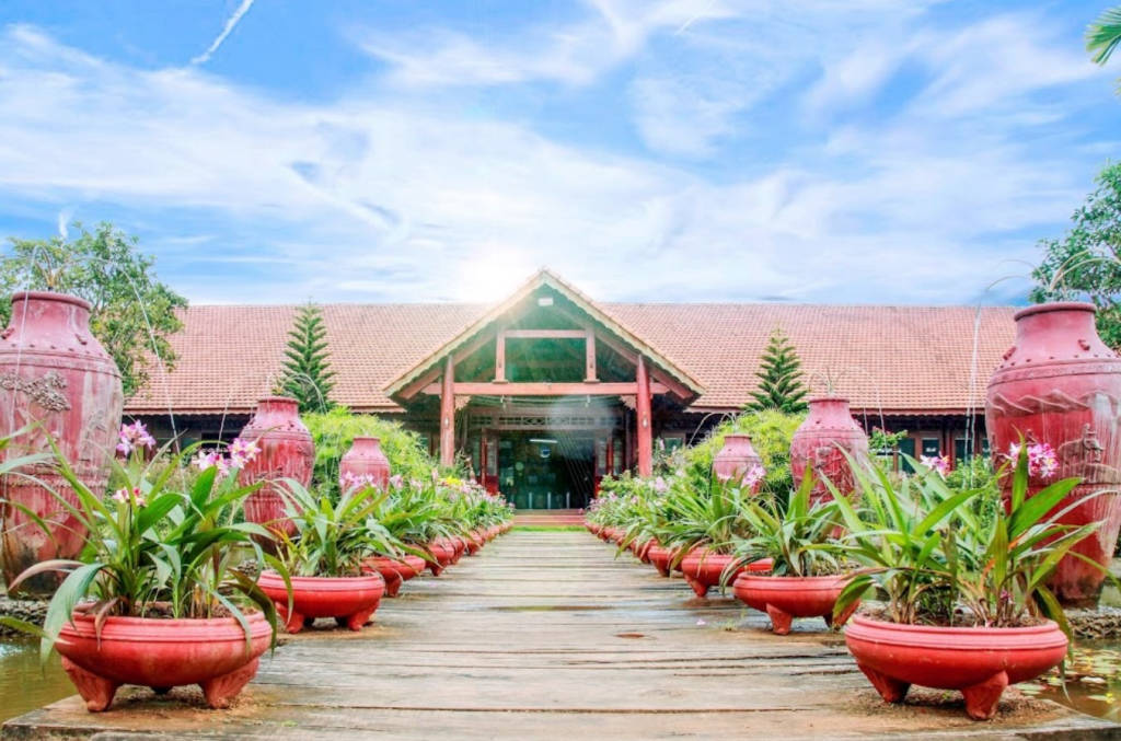 Sau khi qua cổng, du khách sẽ bước vào khu vườn hoa được trồng theo kiểu bậc thang, tựa như một thung lũng, phía trên là cây xanh bao quanh, còn bên dưới là rất nhiều loại hoa cỏ. Tại đây, du khách sẽ được chiêm ngưỡng những cánh đồng hoa mẫu đơn đỏ sẫm quyến rũ hay những cánh đồng hoa dã quỳ vàng óng ánh. Đây là nơi nhiều du khách chọn để chụp hình hoặc dừng chân tại các nhà chòi, trạm dừng để nghỉ ngơi, ngắm cảnh. Đi tiếp vào bên trong, du khách sẽ đến với khu trung tâm là khu vực lưu giữ và bảo tồn những sản phẩn vắn hóa độc đáo của Tây Nguyên. Nơi đây, chuyên trưng bày các hình ảnh văn hóa của người Ê đê cũng như bán các sản phẩm lưu niệm như: nhẫn đuôi voi, gùi mây, đồ thổ cẩm và vòng tay bằng ngà voi...siêu đẹp. Khi đến đây, du khách sẽ bước vào ngôi nhà gỗ lớn có kiến trúc vô cùng độc đáo. Nhà gỗ với sức chứa 1000 người, đây cũng là nơi tổ chức các sự kiện văn hóa, nghệ thuật, hội họp, đám cưới... Ngoài ra, du khách đừng quên bỏ lỡ là dãy nhà sàn nằm gần khu nhà gỗ. Đây là nơi trưng bày rất nhiều tranh ảnh, nhạc cụ và các đồ dùng đặc trưng của người dân Ê- Đê, Gia Rai.