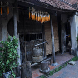 Nhà cổ chủ yếu có 5 hoặc 7 gian 2 chái (có nghĩa là 5 hoặc 7 phòng lớn và 2 phòng nhỏ). Nó có 5 hàng cột, đôi khi là 4 hàng. Ngôi nhà có sự chuyên biệt bởi những chi tiết chạm khắc tinh xảo hình hoa, lá, mây.