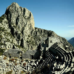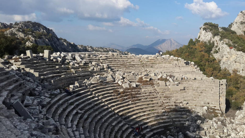 Chuyến thăm tàn tích của thành phố cổ Termessos là một trải nghiệm khác biệt hoàn toàn so với những thành phố cổ kính dọc bờ biển Địa Trung Hải. Để đến được đây, bạn phải vượt qua độ cao 1000 mét, đi sâu vào trung tâm dãy núi Kim Ngưu. Mọi khó khăn của hành trình sẽ được đền đáp xứng đáng bởi khung cảnh từ nhà hát cổ – nơi được coi là có vị trí lý tưởng nhất trong các công trình cùng loại tại Thổ Nhĩ Kỳ. Nằm trong một Công viên Quốc gia, Termessos ẩn mình giữa rừng thông và các loài thực vật quý hiếm, không bị ảnh hưởng bởi sự phát triển rầm rộ của du lịch đại trà. Sự độc đáo này đã biến nơi đây thành đối tượng mê hoặc của nhiều học giả, tiêu biểu là nhà nghiên cứu Karol Lanckoroński vào cuối thế kỷ 19.