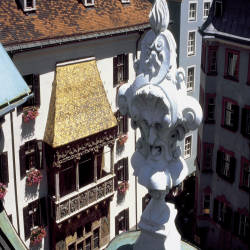 Ở trung tâm của khu lịch sử của thành phố Innsbruck, du khách có thể thấy  Mái Vàng nổi tiếng thế giới, biểu tượng của thành phố. Hoàng đế Maximilian I (1459 - 1519) đã xây dựng ban công có mái vàng theo kiến trúc hậu Gothic nhân dịp đám cưới của ông vào khoảng năm 1500 sau Công nguyên để đánh bại những tin đồn liên quan đến những khó khăn tài chính của vương quốc. Hơn nữa, ban công này được sử dụng như nơi ngồi xem các buổi biểu diễn và giải đấu khác nhau.