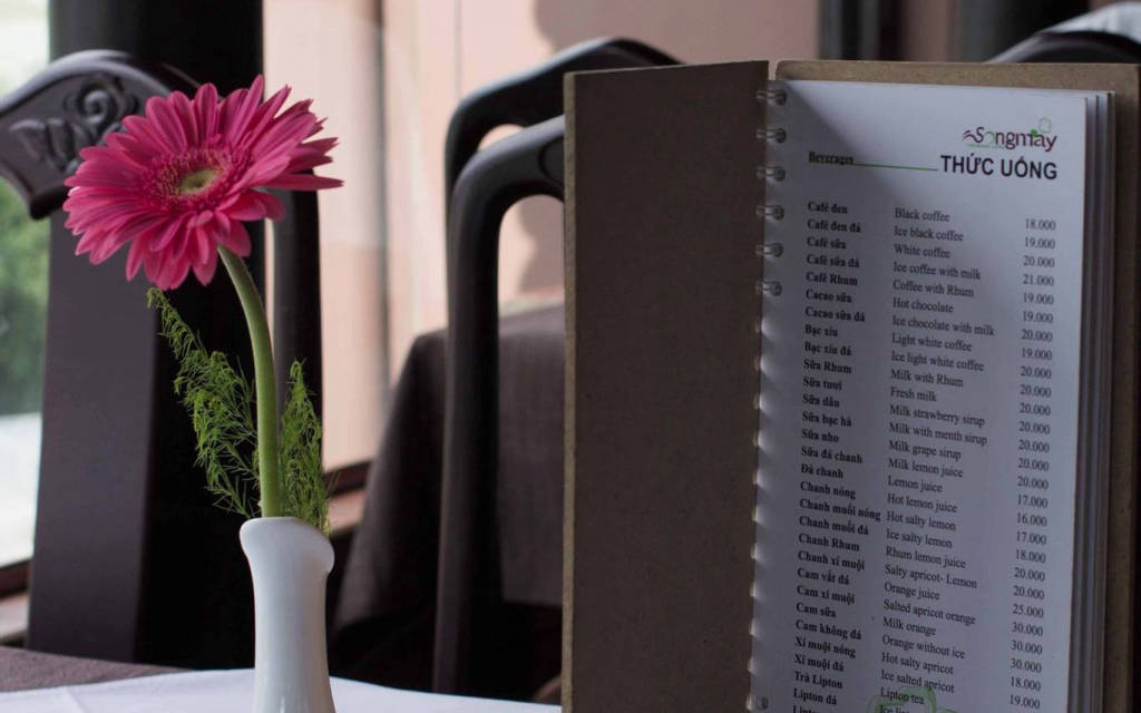 Sở hữu không gian yên tĩnh, lịch sự, sang trọng, nhà hàng là điểm đến của những ai yêu thích thiên nhiên và không khí lãng mạn. Vì có view đẹp nên nhà hàng lúc nào cũng đông khách mặc dù cách khá xa trung tâm thành phố. Bên cạnh đó, menu đặc biệt với nhiều món ngon độc đáo cũng làm nên thương hiệu của nhà hàng Song Mây. Những món mà nhiều du khách tới đây đều đánh giá cao phải kể đến là chạo tôm, chả cá Lã Vọng, bánh mì hải sản, gà ta tiềm ớt hiểm, ba ba chuối đậu, cá cuốn kì lân…Ngoài gọi riêng từng món, nếu thực khách có nhu cầu thưởng thức đa dạng món ăn của nhà hàng thì có chương trình buffet để khách hàng có thể thoải mái lựa chọn những món ngon hợp khẩu vị. Chủ yếu menu của nhà hàng tập trung vào ẩm thực Việt nhưng được biến tấu và kết hợp nhiều nguyên liệu tươi ngon để nâng tầm hương vị và tạo ra nhiều thực đơn độc đáo. Chính vì vậy thực khách mỗi khi đến nhà hàng đều không quên được mùi vị của các món ăn đặc sắc nơi đây. Đặc biệt hơn, mỗi một món tại đây đều được đầu bếp kỳ công chế biến và trang trí như một tác phẩm nghệ thuật khiến thực khách khi ăn vừa cảm được vị ngon vừa được chiêu đãi thị giác.