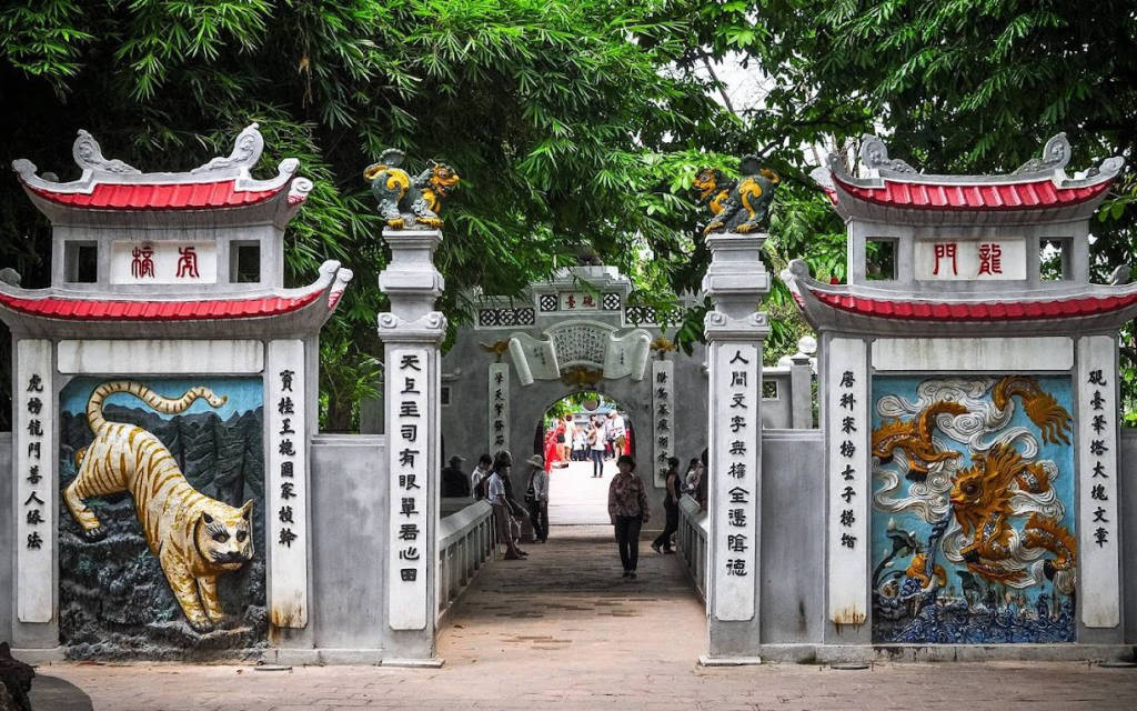 Ngay đầu cầu Thê Húc, quý vị sẽ nhìn thấy Đài Nghiên, một biểu tượng của tri thức, đặt trên ba con ếch đá, thể hiện sự kiên định. Phía đối diện là Tháp Bút, với năm tầng tượng trưng cho ngũ hành, khắc dòng chữ “Tả Thanh Thiên” – nghĩa là “Viết lên trời xanh.” Đây là lời nhắc nhở về tinh thần học hỏi và tôn vinh tri thức.