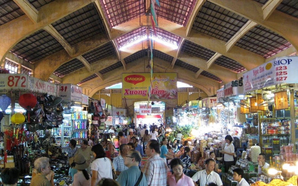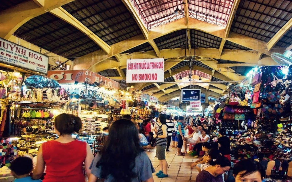With an area of more than 13000m², Ben Thanh market welcomes an average of 10,000 domestic and international visitors every day. The market includes 1437 stalls, 6000 small merchants and 11 businesses. Inside the market is a variety of shops from affordable to luxury, souvenir shops, t-shirts and clothes, as well as traditional crafts including embroidery, silk inside and out, countryside, and many different garments with Vietnamese, Asian, and Western styles. In addition, visitors can also taste and buy fruits, dry food and vegetables, and a variety of food ingredients at the stalls near the food court.