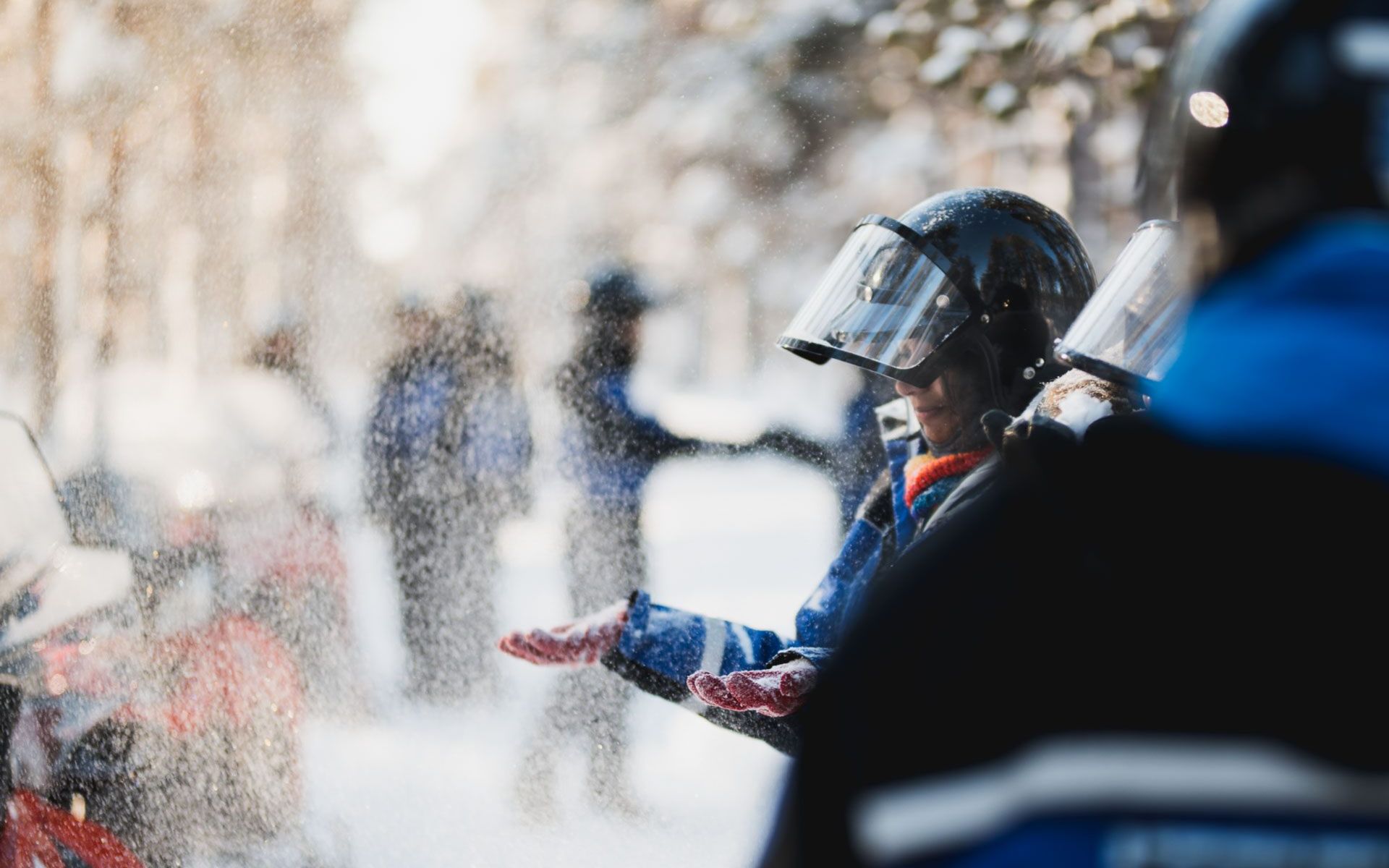 Đến nơi bắt đầu tour, bạn được trang bị quần áo ấm và được hướng dẫn về cách lái xe trượt tuyết.