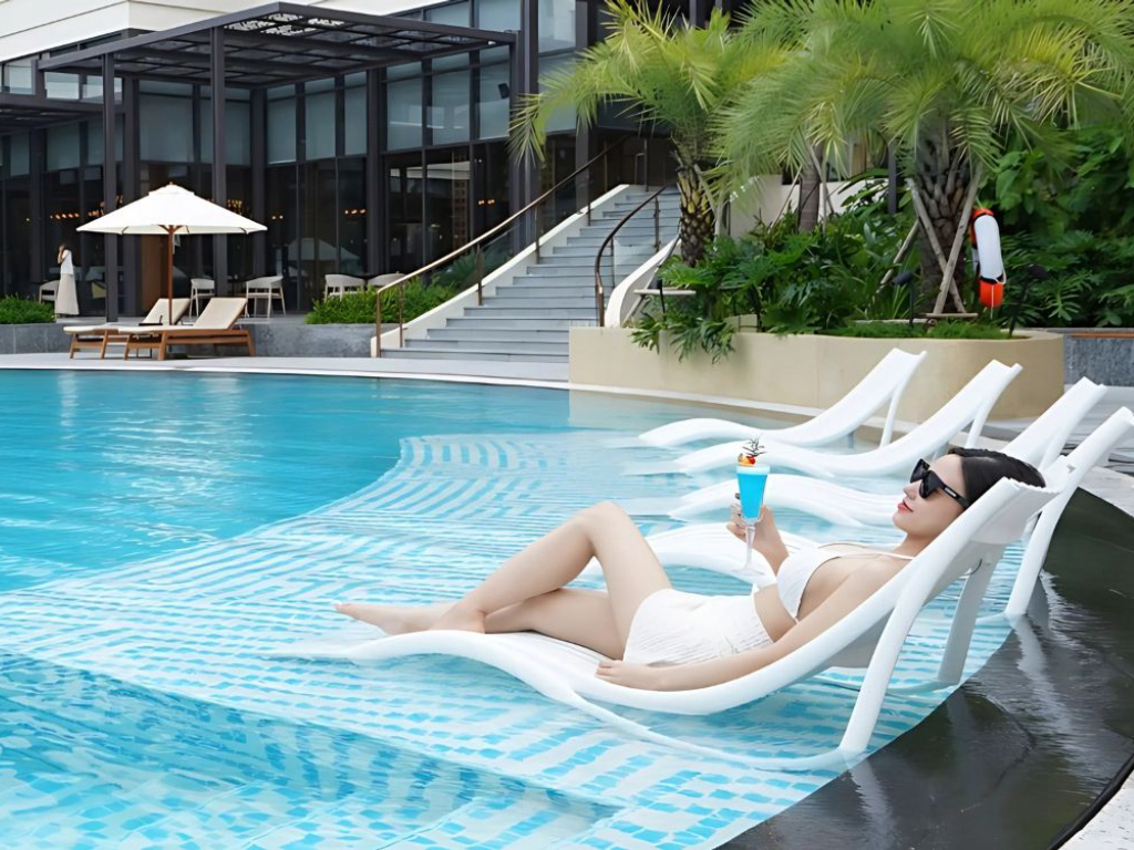 • Buổi chiều rảnh rỗi: Thư giãn bên hồ bơi, đặt phòng spa riêng hoặc tận hưởng buổi pha chế đồ uống theo yêu cầu.