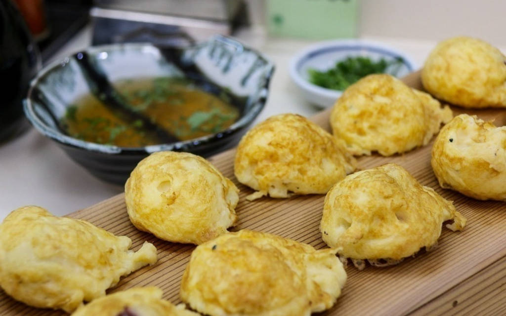 Enjoy the Akashiyaki grilled octopus cake , soft and fluffy. It was originally from a street vendor named Tomekichi Endo, who saw Akashiyaki, a popular egg-flour dumpling in Hyogo prefecture in 1935. He tried to modify the Akashiyaki recipe, replacing egg powder. flour and choose octopus as a filling because the Seto Inland Sea is a rich source of octopus. Over time, grilled octopus cake Akashiyaki has quickly won the love of people all over the country and the world. The presence of grilled octopus cakes permeates every street and street, from mobile sidewalk stalls, festivals, souvenir shops to highway rest areas in Japan.