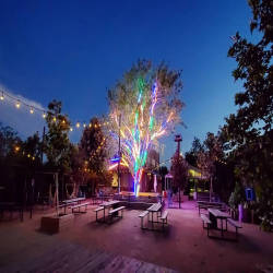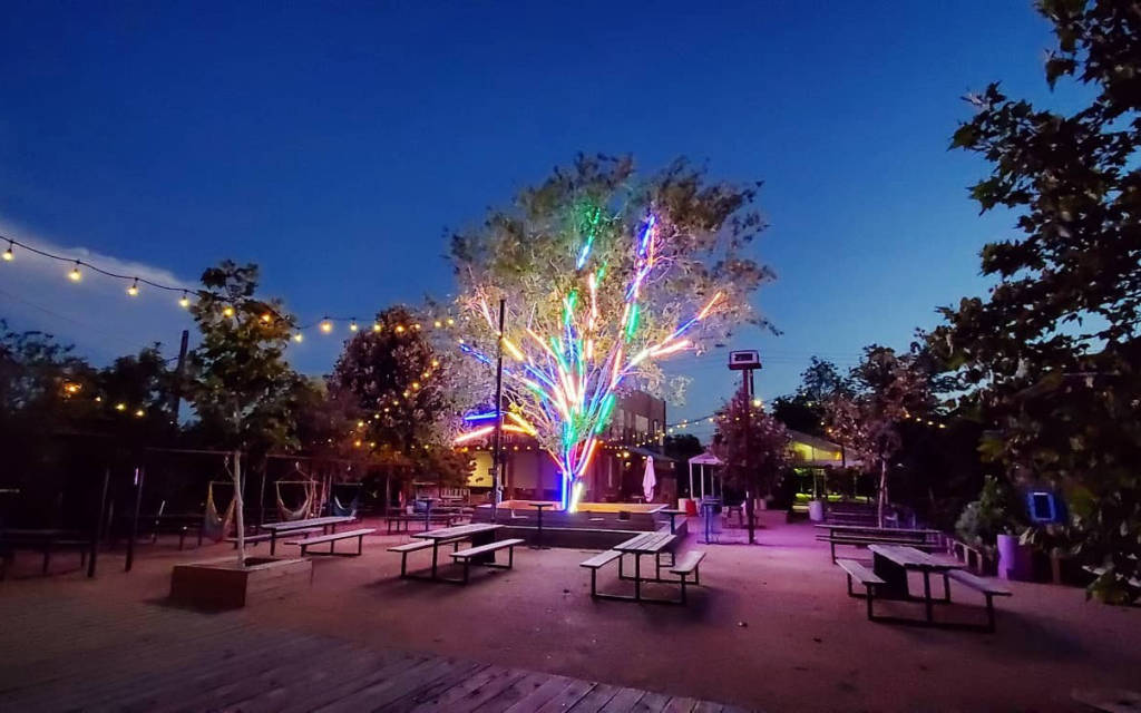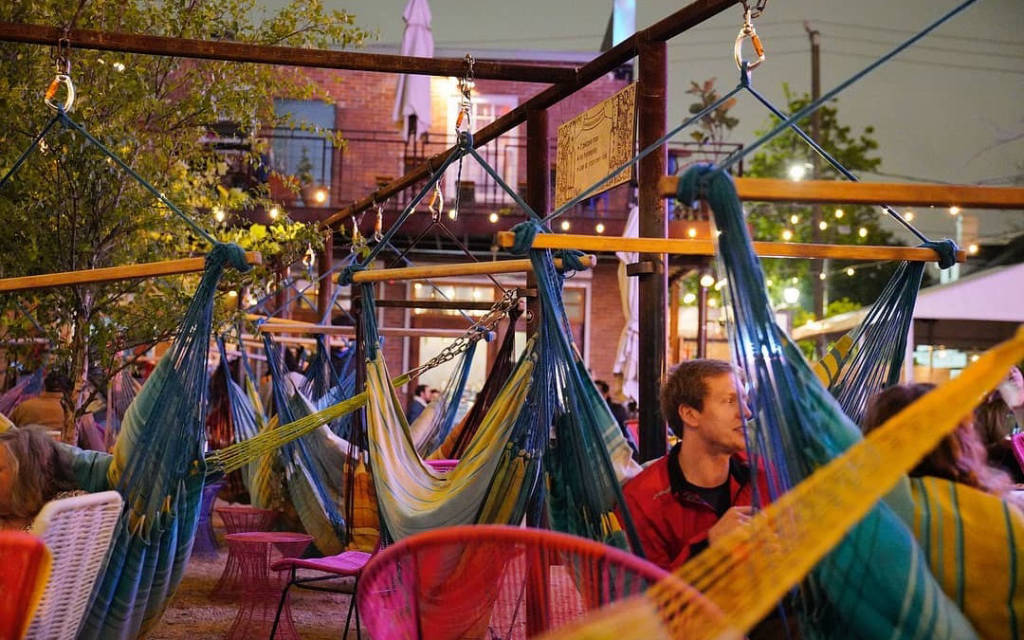 Khoảng sân ngoài trời của Axelrad Beer Garden là nơi thường xuyên diễn ra các chương trình âm nhạc được biến tấu với cây cối, ánh đèn, những chiếc võng màu sắc,... Hầu hết khách hàng khi đến đây đều có 1 ly nước trong tay bởi sự lựa chọn đa dạng với hơn 30 loại bia khác nhau và nhiều loại cocktail được pha chế mới mẻ mà Axelrad cung cấp.