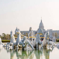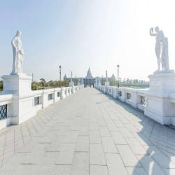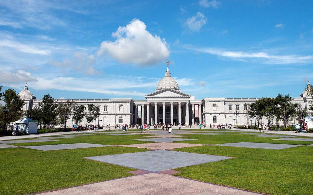 Bên ngoài bảo tàng là một không gian rộng lớn, thoáng đãng, phù hợp cho những nhiều thành phần, lứa tuổi đến tản bộ, hít thở khí trời trong lành. Sẽ không quá lời khi có một số bình luận của nhiều khách tham quan cho rằng nơi đây giống như một Nhà Trắng thu nhỏ tại Châu Á. Càng tiến đến gần, bạn sẽ trầm trồ với một khối tổng thể mang kiến trúc Châu Âu đặc trưng được bao bọc bằng nhiều hồ nước nhỏ.