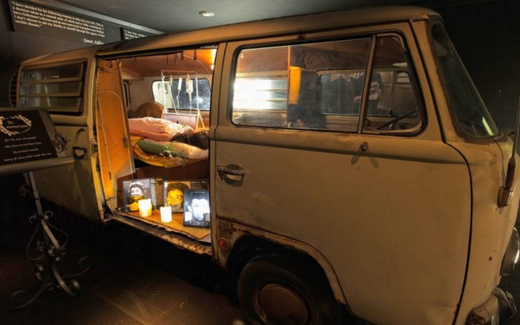 Among the hundreds of spooky properties, museum-goers can even peek inside the VW death truck where Dr Jack Kevorkian ended the suffering of terminally ill patients as well as Close-up view of the "Propofol chair" after Michael Jackson's death.