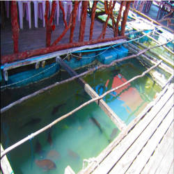 Trong khi chờ thức ăn được chế biến, bạn có thể đi dạo quanh các nhà bè để tham quan và tìm hiểu các bè nuôi cá của ngư dân. Sẽ không quá bất ngờ nếu bạn bắt gặp cá mập báo, cá thổi, lươn đồng hoặc tôm bọ ngựa.