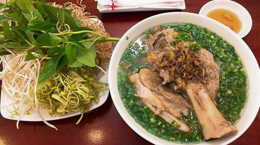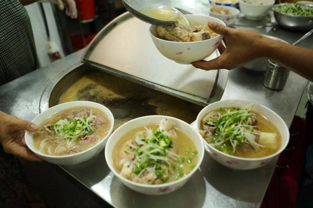 Khi thực khách vào gọi món, chủ quán sẽ lấy từng miếng giò chìa cho vào nồi nước đã ninh nóng hổi, múc vào tô bún đã có sẵn mắm ruốc. Bước cuối cùng để hoàn thiện tô bún rồi cho thêm hành lá, hành tây vào tô. Nước dùng có vị cay nồng nhưng lại rất thanh, ăn kèm miếng giò chìa chấm cùng với chén mắm ớt của quán thì vô cùng tuyệt vời.