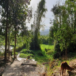 The "drop of water" of K'nam village is located under an ancient banyan tree that is more than 60 years old. We came to visit K'nam water drop in the early morning of a day in November. The cool autumn weather of Kon Tum is even cooler when standing under the canopy of banyan leaves. Mrs. Vot, nearly 70 years old, told us about the "drop of water" coming from the banyan tree. From the past, she followed her mother to the drop of water to get water for daily life. In the past, the villagers carried water to the tank by means of umbrella trees, today the government has built a water collection area and uses PVC pipes to conduct water.