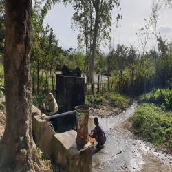 While talking with Mrs. Vot, two motorbikes carrying 4-5 teenagers brought plastic bottles to get water to make the air in the drop of water more vibrant. According to Ms. Vot, every afternoon with a "drop of water" is the most fun. There, children and young people cool off. The girls go to the laundry. There, they chat with each other, a space to meet the community for information, to exchange work or to discuss the upcoming festival of the village.