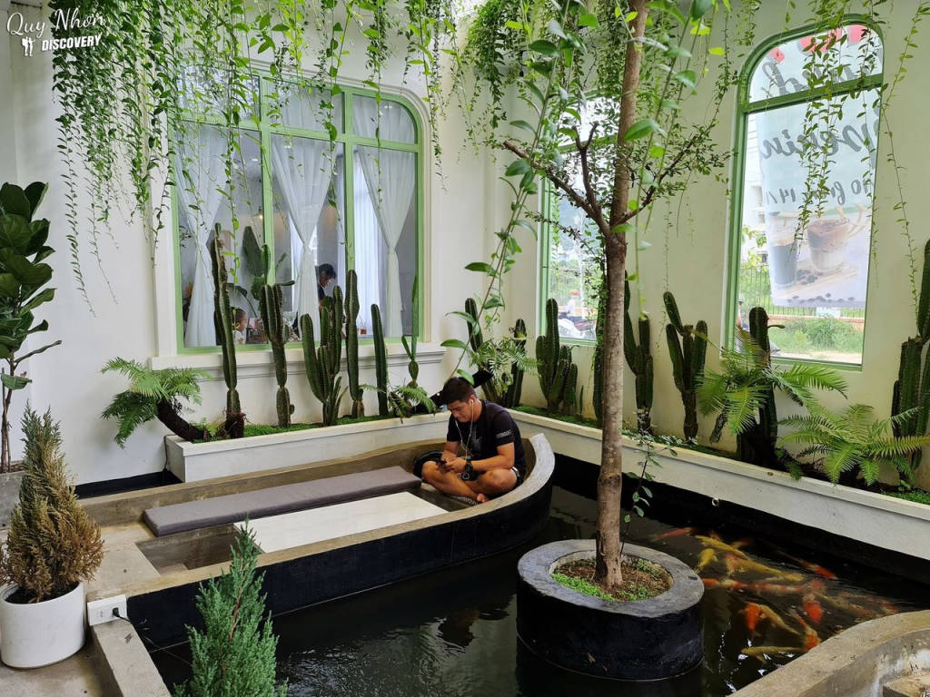 Ngoài ra, Chôm Coffee & Tea còn mang trong mình một phong cách thiết kế rất hiện đại và trẻ trung lấy nguồn cảm hứng từ Địa Trung Hải với tone màu chủ đạo từ trong ra ngoài luôn là xanh và trắng, kết hợp hài hòa với các mảng cây xanh tràn ngập ánh sáng tạo cảm giác hài hòa với thiên nhiên. Bên trong quán còn thiết kế một hồ cá Koi và chỗ ngồi tựa như mũi thuyền, giúp bạn có thể vừa nhâm nhi đồ uống vừa xem đàn cá tung tăng bơi lội.