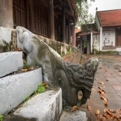 Tiếp theo, quý vị sẽ không thể bỏ qua đôi rồng đá trên thềm bậc Tiền đường, một tuyệt tác điêu khắc đá có tuổi đời khoảng 500 năm. Những đường nét chạm khắc như được thổi hồn vào đá, tạo ra vẻ thần thái hiền hòa nhưng cũng không kém phần uy nghiêm. Đây là một minh chứng cho tay nghề tài hoa của các nghệ nhân thời xưa.