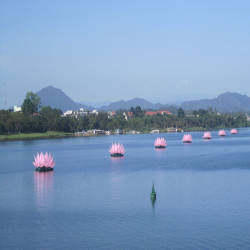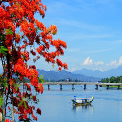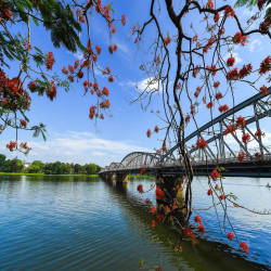 Perfume River is a large river flowing through the heart of Hue City, famous for its poetic and lyrical beauty. The river has many names: Lo Dung, Linh, Dinh, Kim Tra, Huong. There is a legend that it is called the Perfume River because at the source of the river there are many varieties of Thach Xuong Bo grass that bring scent into the water stream.