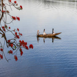 The Perfume River is not long, the whole river is only 100 km. As for the main river section called Huong River, it is only about 30 km long. From the Bang Lang junction, the Perfume River gently and slowly flows through the rich villages of the periphery of Hue, enters the heart of the city, and then continues to meander through the downstream countryside before reaching the sea.