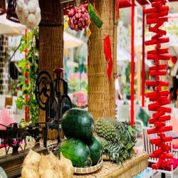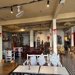 • Khu vực trong nhà: Được thiết kế như những phòng khách quý tộc với ghế sofa bọc vải hoa văn vintage, đèn chùm lộng lẫy và không khí ấm cúng, tách biệt hẳn với sự náo nhiệt bên ngoài.