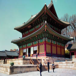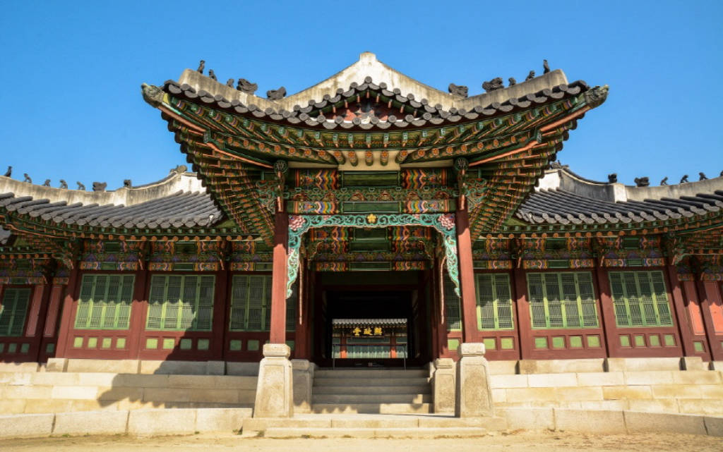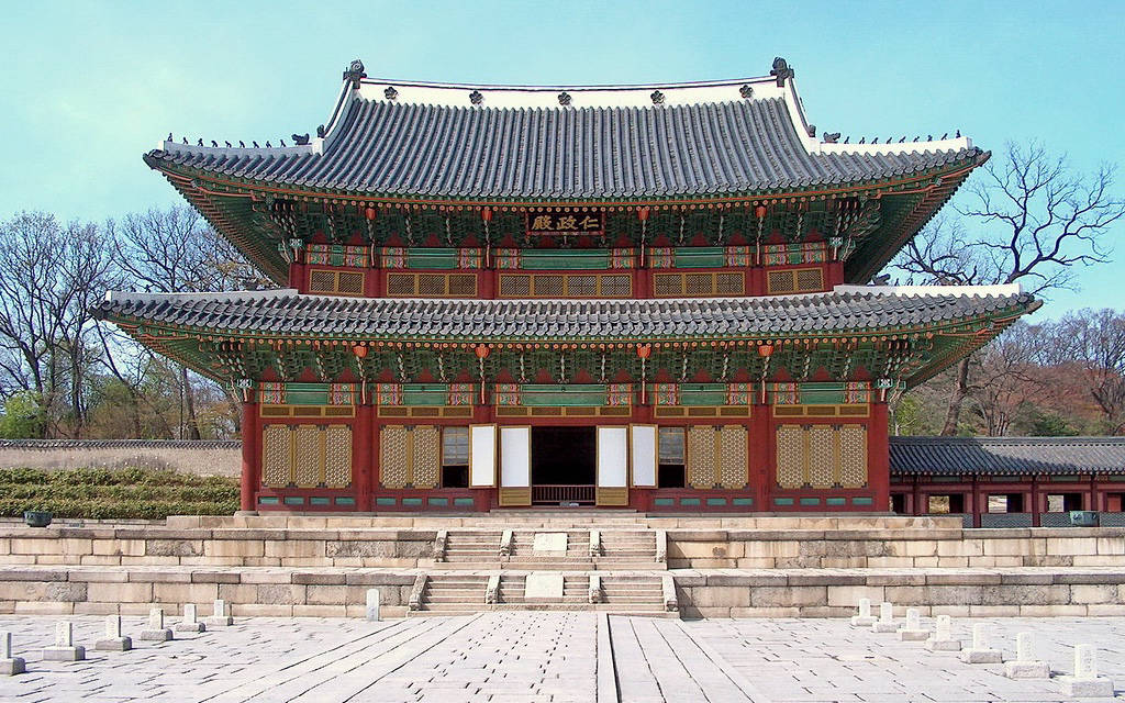 Đi vào qua cổng Donhwamun, có từ năm 1608, đây là lối vào lớn nhất trong số bốn cung điện chính của Seoul. Rẽ phải và du khách sẽ băng qua một cây cầu đá (được xây dựng vào năm 1414, là cây cầu lâu đời nhất còn tồn tại trong thành phố). Bên trái là toà nhà cung điện chính – Injeongjeon, nằm hài hoà với sân lát gạch, hành lang mở và cây cối xanh mát phủ bóng đằng sau. Bên cạnh là các toà nhà văn phòng chính phủ, trong đó có một toà nhà lợp ngói màu xanh lam. Xa hơn nữa là các khu sinh hoạt riêng của gia đình hoàng gia.