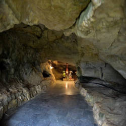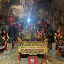 Đi sâu vào trong động, phía bên trái có tượng A Di Đà làm từ đá xanh được chế tác từ những năm đầu tiên lập chùa và là pho tượng phật bằng đá cổ có một không hai trong vùng. Phía dưới tượng Phật là rồng đá cuộn tròn, được thiên nhiên tạo nên.