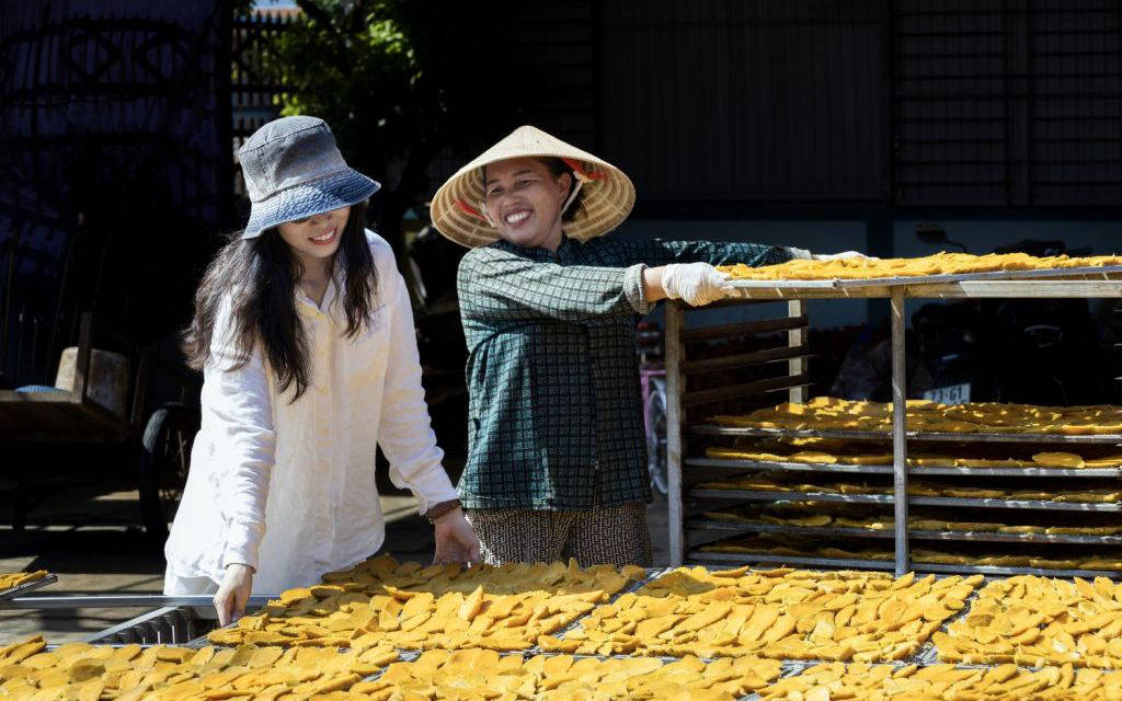 Giêng hai khoai bầu – câu tục ngữ ấy là phương ngôn về ẩm thực làng cát, dấu ấn lịch sử một thời đói kém. Còn ngày nay, khoai làng cát đã trở thành món đặc sản dân dã dùng để làm quà tặng cho khách du lịch xa gần. Dừng chân tại cơ sở chế biến khoai deo lớn nhất làng. Chúng tôi không khỏi ngạc nhiên về không khí khẩn trương làm việc của bà con. Lân la bắt chuyện, tôi được người dân chân chất chia sẻ câu chuyện làm nghề. Khoai lang sau khi thu hoạch phải lấy chăn vải ủ khoảng 3 – 5 ngày cho xuống mật sau đó mới rửa sạch, nấu chín rồi bóc vỏ, xắt lát và phơi được nắng thì mới dai và ngọt. Nghe thì đơn giản vậy, chứ ngồi quan sát mới cảm nhận được, lát khoai đó ngon ngọt, đảm bảo vệ sinh chắc chắn là nhờ sự tỉ mẫn và thấm cả mồ hôi công sức bao ngày tháng của người làm. Khoai deo bây giờ đã được đóng gói bao bì đẹp mắt, theo chân du khách đi khắp mọi miền. Để đáp ứng nhu cầu thị trường, hiện nay nhiều cơ sở chế biến khoai deo ở Hải Ninh đã đầu tư máy sấy, đảm bảo cho việc chế biến khoai cả những giai đoạn trời không có nắng.