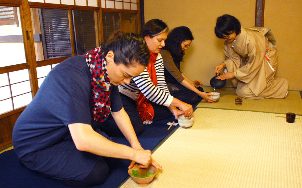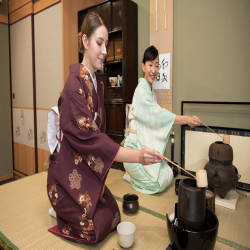 Trà đạo được xem như là một điển hình văn hóa cổ xưa của Nhật Bản, việc thưởng thức trà đó là nghệ thuật có những nguyên tắc thú vị mà người uống phải tuân thủ theo. Tinh thần của trà đạo luôn dựa trên bốn nguyên tắc cơ bản: Hòa-Kính-Thanh-Tịnh. Những người Nhật thường tổ chức uống trà ở những khu vườn hay phòng trà những nơi yên tĩnh để người uống có thư giãn thưởng thức. Bên cạnh việc uống trà người thưởng thức trà thường được dùng kèm các loại bánh nhỏ làm theo mùa với hình dáng bắt mắt như một vài loại bánh ngọt để gia tăng hương vị của trà. Đến với khóa học bạn sẽ được các hướng dẫn giới thiệu về công đoạn pha trà, cách để có một ấm trà ngon như người Nhật, những người pha trà luôn phải tuân thủ các 5 nguyên tắc cơ bản từ việc chọn nước pha trà, đun sôi, làm ấm dụng cụ, pha trà, cách rót trà và thưởng thức trà. Các khóa học diễn ra trong vòng 60 phút. Đến với cố đô Nhật Bản xưa bạn sẽ không chỉ tìm hiểu được các di tích lịch sử mà bạn có thể tìm hiểu nét văn hóa thông qua trà đạo.