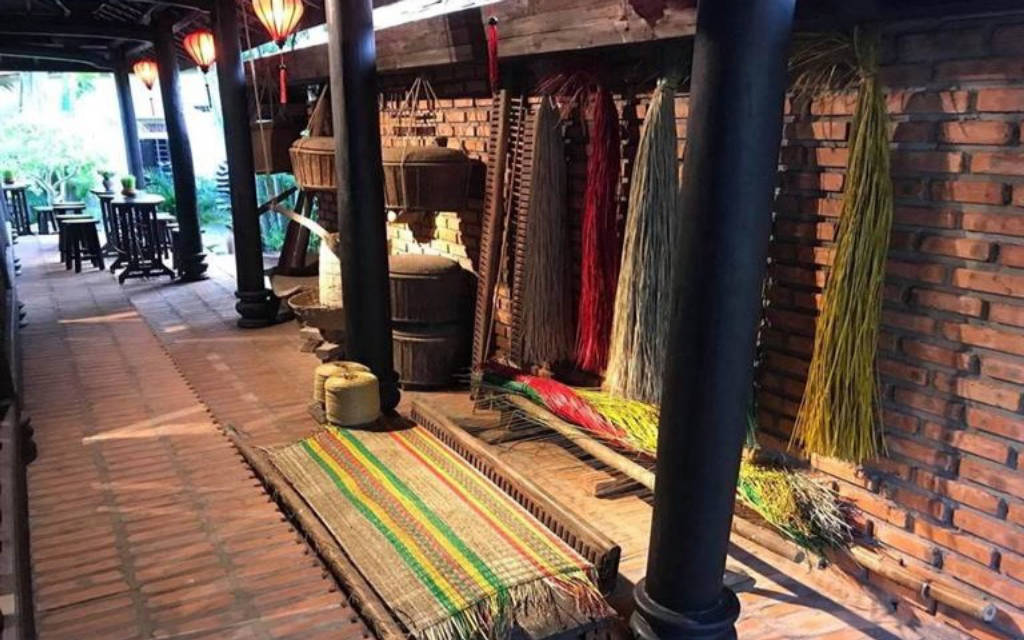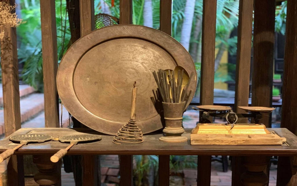 Tiếp theo là ngôi nhà gỗ thứ nhất được bài trí với khung dệt cổ của người làng nghề lụa Ngân Sơn cùng những vật dụng đánh bắt cá ven sông như: nơm, lộng, chấn, đăng; những vật gia dụng khuôn bánh thuẩn, bánh kẹp, bánh in, chát, lu gốm, cối xay lúa, quạt giê lúa, đôi nừng, cày, bừa và những chiếc máy may cũ kết hợp làm bàn cà phê, máy điện thoại cổ…