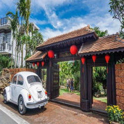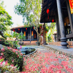Bước qua cánh cổng gỗ của không gian văn hóa Quảng Đức Xưa. Một khuôn vườn đậm chất Nam Trung Bộ, giản dị mà không kém phần sang trọng với nền cỏ, bóng cau ánh vàng. Giữa vườn cây ăn trái thoáng đãng, du khách bất chợt gặp hàng trăm vật dụng nông thôn Phú Yên từ những thế kỷ trước như: cối đá xay bột thủ công, cối quết thực phẩm, hòn đá cà (dùng để lăn, tán nhỏ ngũ cốc) ... Hay những góc trưng bày trầm hương, khung cưởi, lờ tôm, lờ cá.... những thứ gợi nhớ về tuổi thơ.
