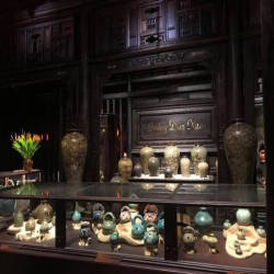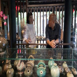 Ngôi nhà cổ thứ ba trưng bày dòng gốm tráng men nhiều màu khác nhau, trong đó có những màu men quý như xanh ngọc, huyết dụ; những chum, chóe, nậm rượu, mỗi đồ vật là một độc bản; cùng với đó là các sản phẩm độc đáo như trầm hương, tơ lụa.... Căn nhà 6 gian chạm khắc những họa tiết hoa lá uốn lượn trên thân cột như đưa người ta về miền xưa cũ. Điều đặc biệt ít ai biết rằng, đây là ngôi nhà cổ được quan tổng trấn Phước Tường Nội xây dựng vào đầu thế kỷ 20 khi ông đương chức tại đây.