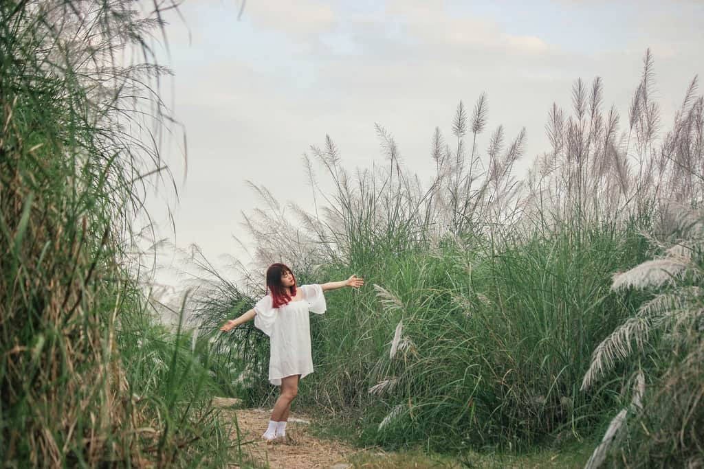 Bãi cỏ lau ở triền đê Ngọc Thụy được nhiều bạn trẻ đánh giá rằng đẹp chẳng khác gì những con đê cỏ lau của Nhật. Cách trung tâm Hà Nội 7km, qua cầu Long Biên, bãi lau này đặc biệt tuyệt đẹp vào những buổi chiều tà khi hoàng hôn buông xuống, phủ màu tìm hồng lên cảnh quan xung quanh. Khung cảnh vốn dĩ đã quá nên thơ, vậy nên, chỉ cần chuẩn bị một set đồ thật yêu, thả dáng một chút là có ngay bộ ảnh tuyệt đẹp rồi.