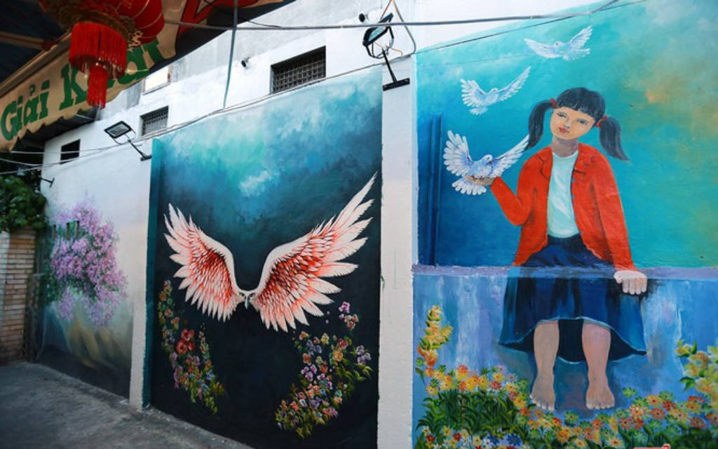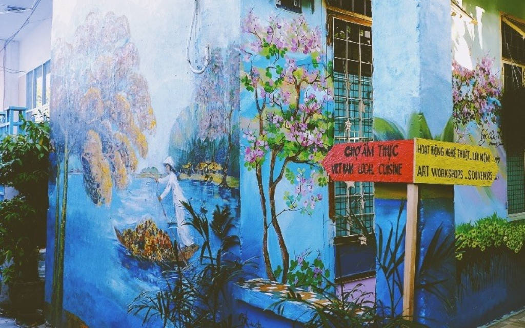 Làng bích họa với những bức tường vẽ tranh kéo dài hơn 1km tại Đà nẵng là điểm tham quan mới của Đà Nẵng và là nơi mang lại những trải nghiệm thụ vị với đời sống ngày thường của dân địa phương nơi đây.