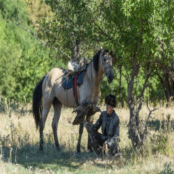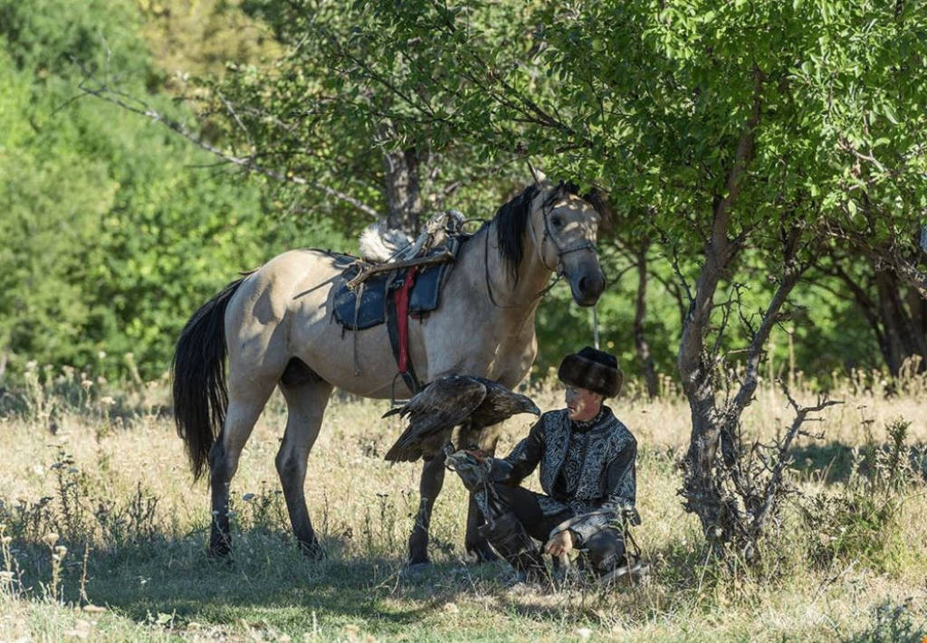 Một cách nữa để chạm đến cuộc sống thực thụ của mộ người dân du mục là trải nghiệm nắm giữ trên tay một con đại bàng đã được thuần hóa. Trong phút chốc, bạn sẽ có được cảm giác trở thành một thợ săn du mục trong vài giờ với sinh vật mang tính biểu trưng này. Săn bắn đóng vai trò quan trọng trong đời sống của người dân du mục bởi nó hỗ trợ chính cho quá trình chăn nuôi gia súc và mang tính giáo dục cao. Từ thời cổ đại ở các thảo nguyên lơn, các hoạt động săn bắt cá thể và tập thể đã rất phát triển, các đối tượng săn bắn chủ yếu là saigas, hươu sao và cáo. Du khách sẽ có cơ hội trò chuyện với các thợ săn du mục thực thu, để hiểu thêm về cuộc sống thường ngày của họ.