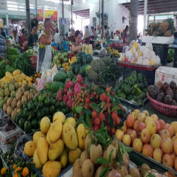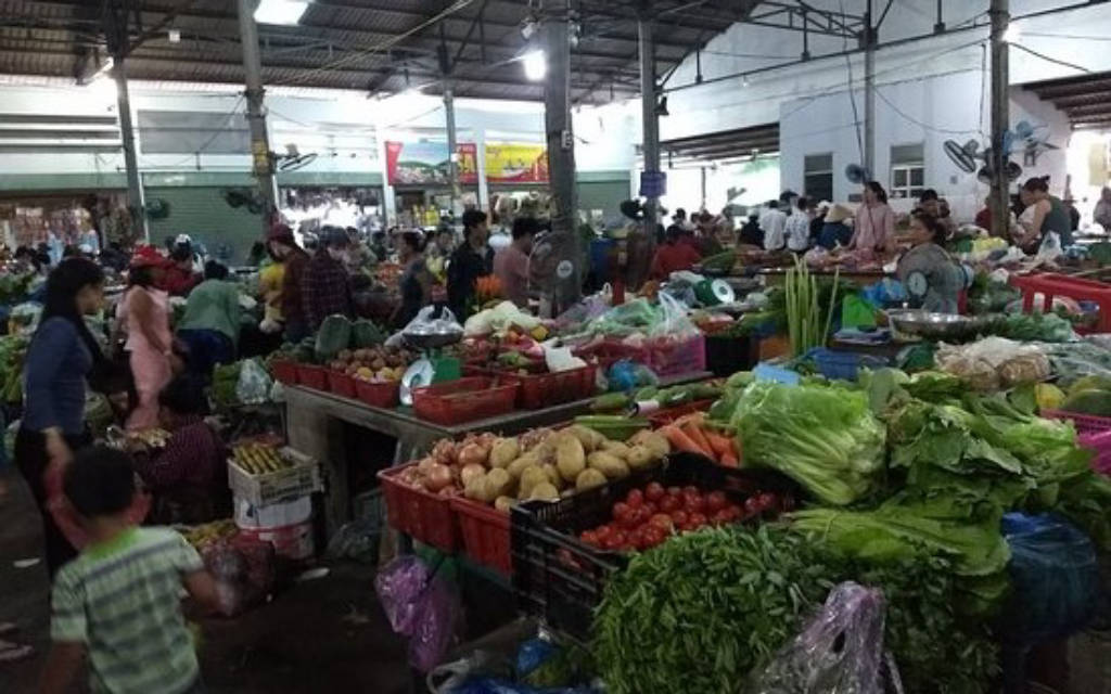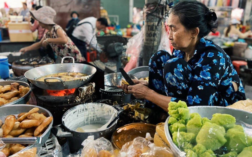Khu chợ nhộn nhịp nằm trong một tòa nhà màu xanh lam dọc theo đường Nguyễn Đình Chiểu, nơi du khách có thể cảm nhận được cuộc sống của người dân miền biển.