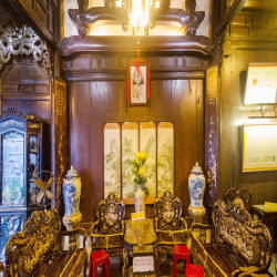 Trong không gian phía sau của nhà cổ là những cột mốc ghi lại các trận lũ lụt lớn đã diễn ra tại nơi này. Đồng thời, đây cũng là nơi bày bán các sản phẩm lưu niệm cho du khách đến thăm.