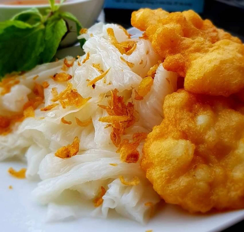 Bánh cuốn chả mực được người dân nơi đây chọn làm món ăn sáng, bởi món này dễ ăn, hấp dẫn và phù hợp với mọi lứa tuổi. Để thưởng thức được một đĩa bánh cuốn chuẩn vị thì công đoạn chế biến đòi hỏi rất công phu. Chả mực muốn ngon phải được làm từ mực nang, còn tươi. Mực sẽ làm sạch, cắt nhỏ, nhân viên bắt buộc phải giã bằng tay mới làm cho mực có thể giòn sần sật, nếu xay bằng máy miếng mực khi ăn sẽ không có độ dai, giòn. Sau đó người ta nặn từng miếng, chiên đến khi chúng vàng ươm, rồi nhanh chóng được mang lên phục vụ du khách.