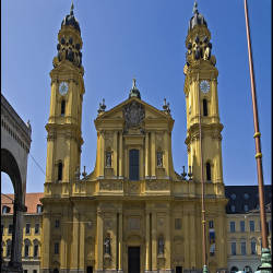 Bên cạnh Feldherrnhalle là hai toà tháp màu vàng nổi bật của Theatinekirche (Nhà thờ Theatine) đứng ở độ cao 66 mét. Nhà thờ Công giáo thế kỷ 17 này được xây dựng bởi một nhà quý tộc xứ Bavaria để cám ơn sự ra đời của một người thừa kế mà mọi người ngày đêm trông mong – Thái tử và sau là Đại cử tri Max Emanuel vào năm 1662.