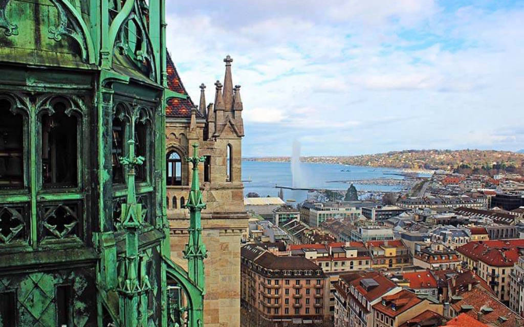 Climb two tall towers with long spiral staircases for a 360-degree view of the entire Geneva city lake and Lake Geneva and the majestic Jet d'Eau fountain. The two towers are the North and South towers. The South Tower should be visited in good weather, as it has an outdoor balcony where visitors can freely move around and enjoy the lake view. While the upper room of the North tower is a spacious wooden room with closed windows, so it is a popular place on rainy days.