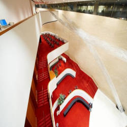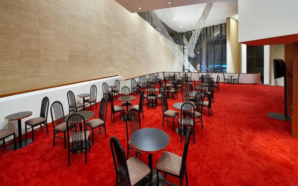 Phòng hòa nhạc được các kiến trúc sư ưu ái cung cấp tính linh hoạt vô song cho phép nó có thể là nơi biểu diễn một số loại hình nghệ thuật. Trên cao, 800 hình lục giác có thể di chuyển lên xuống để tập hợp lại âm lượng, thay đổi hoàn cảnh vật lý của căn phòng và điều khiển âm học. Khán phòng theo đúng nghĩa đen có thể thu nhỏ từ 2.912 chỗ xuống 2.300. Bầu không khí của hội trường được nâng cao với chỗ ngồi bọc nhung đỏ rực rỡ, những bức tường bằng gỗ tếch vàng.