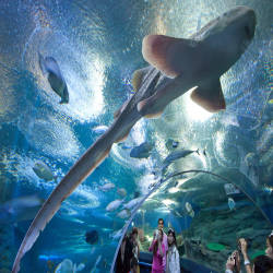 Đó là một trải nghiệm thú vị cho cả người lớn và trẻ em khi nhìn thấy nhiều loài cá và san hô đầy màu sắc được nuôi trong bể cá và đi bộ qua đường hầm kính dài hơn 100 mét xuyên qua thủy cung, cơ hội để đến rất gần với các loài động vật biển như cá mập, cá đuối và nhiều loài cá nhiệt đới đầy màu sắc.