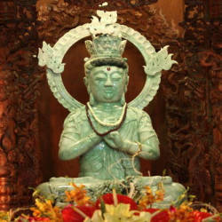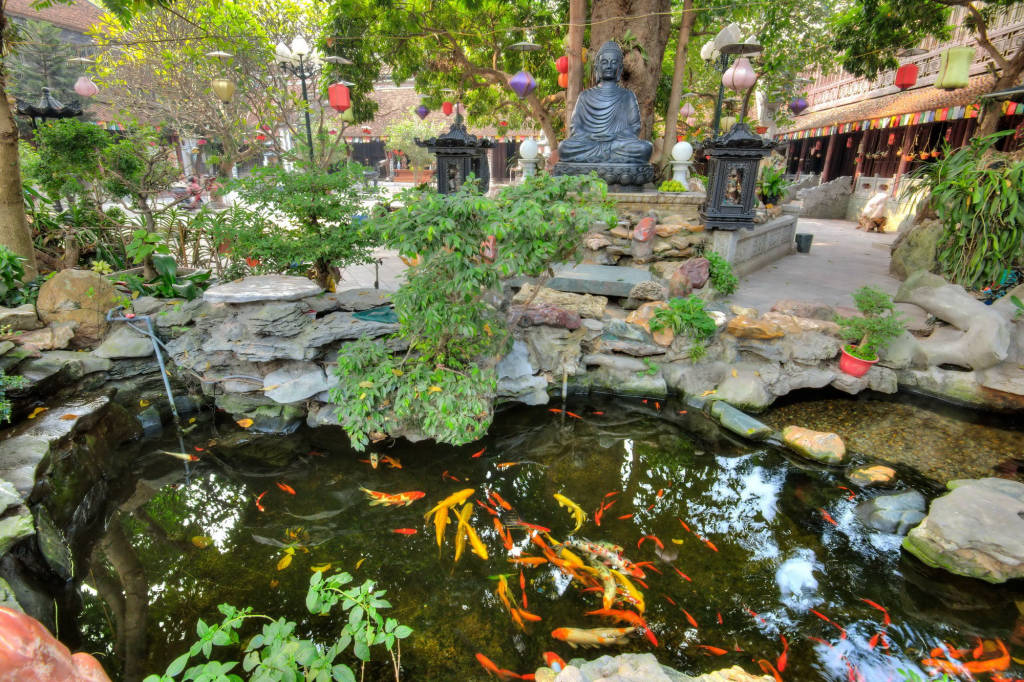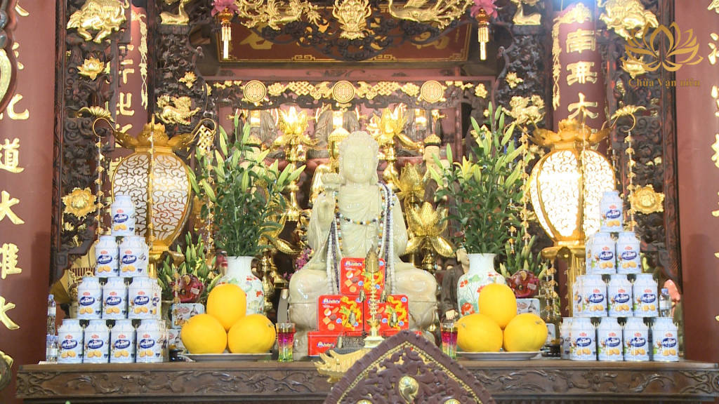 Chính điện chùa có rất nhiều pho tượng Phật, nổi bật là tượng Phật Thích Ca bằng ngọc Myanmar quý hiếm, cao 1,3m, nặng 600kg. Trên nóc chùa có khắc 3 chữ triện “Vạn niên tự” mang ý nghĩa trường tồn cùng thời gian. Nằm cạnh chính điện là nhà thờ Mẫu Liễu Hạnh Công chúa, một trong tứ bất tử của tín ngưỡng dân gian Việt Nam.