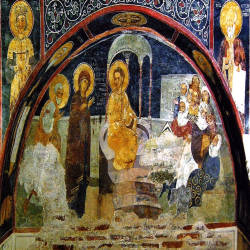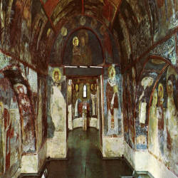 Lớp bích họa đầu tiên bao phủ toàn bộ tòa nhà phía đông cũng là tòa nhà lâu đời nhất, về sau chúng được bảo tồn ở phần dưới của đỉnh nhà thờ và rải rác ở một số địa điểm khác xung quanh tòa nhà phía đông. Theo thống kê, có đến có đến 89 khung cảnh với 240 hình ảnh con người được tái hiện đầy nổi bật ở lớp thứ hai và đây là minh chứng cho những thành tựu đặc biệt của văn hóa Bulgaria thời trung cổ. Hình ảnh các vị thánh, chiến binh, các hoạt động trong những ngày lễ lớn, cảnh sinh hoạt thế tục lúc bấy giờ đều được khắc họa lại với độ chính xác, kỹ năng và cảm giác phi thường. Ở lớp cuối cùng chính là những bức bích họa được vẽ trong khoảng thời gian từ thế kỉ thứ 14 cho đến 17. Ba bức họa điển hình cho lớp này là: Lễ hiện diện của Đức Trinh Nữ, chân dung thánh Nicholas vào thế kỉ 16 và đại diện của hai vị thánh bảo trợ nhà thờ Boyana là Thánh Nicholas và Thánh Panteleimon.