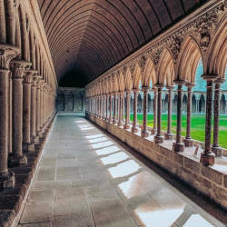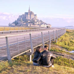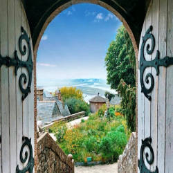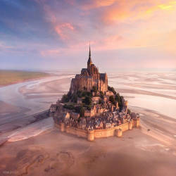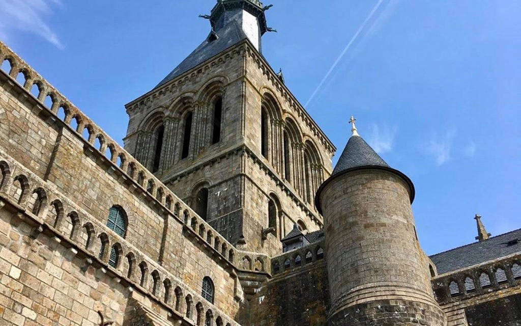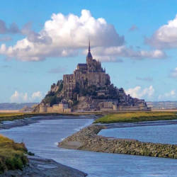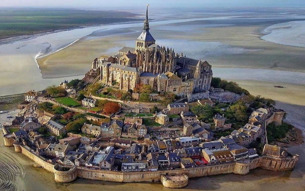 Mont Saint Michel là một xã đảo ở Normandie (Pháp). Với vị trí nằm cách đất liền gần 1 km, trong lịch sử, đây là nơi dễ dàng được những người hành hương đến Tu viện tiếp cận khi thủy triều xuống. Đồng thời, đó cũng là một cách phòng thủ hiệu quả nếu những kẻ tấn công đi qua mà không rút lui kịp.