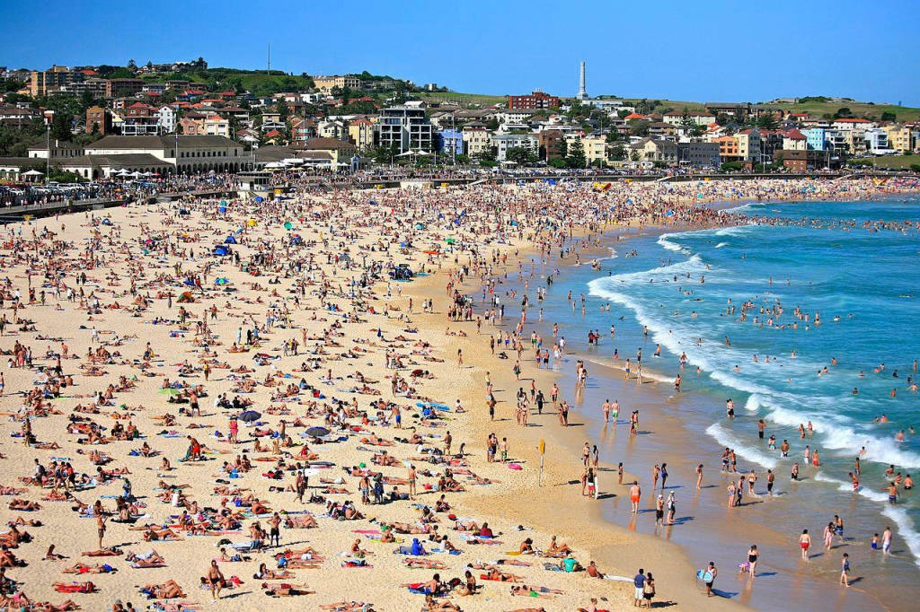 Bondi beach with fine white sand stretching about 1km, viewed from above has a curved shape like a crescent, this is one of the beautiful beaches in Sydney. The beach attracts a lot of tourists to cool off on hot summer days, to be immersed in the cool, blue water is a feeling that is nothing more enjoyable than coming to the beach.